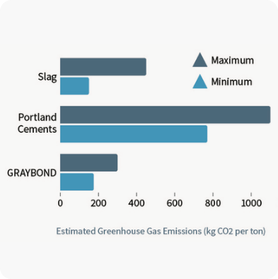 Remplacer jusqu’à 35 % du ciment par le produit GRAYBONDMC permet de réduire les émissions de GES associées à l’utilisation de liants.